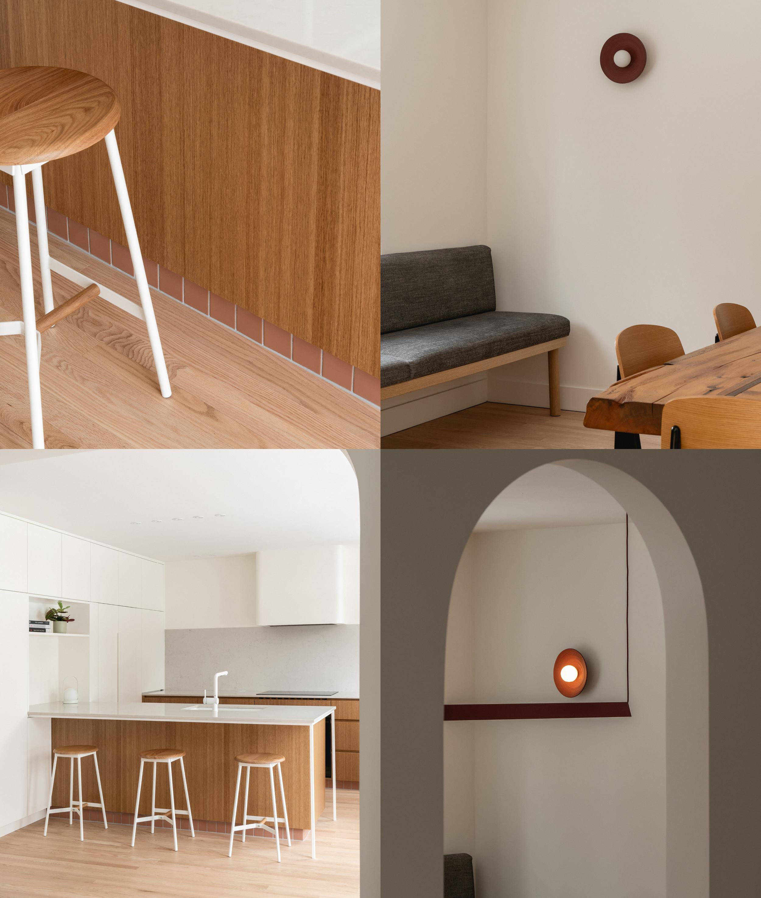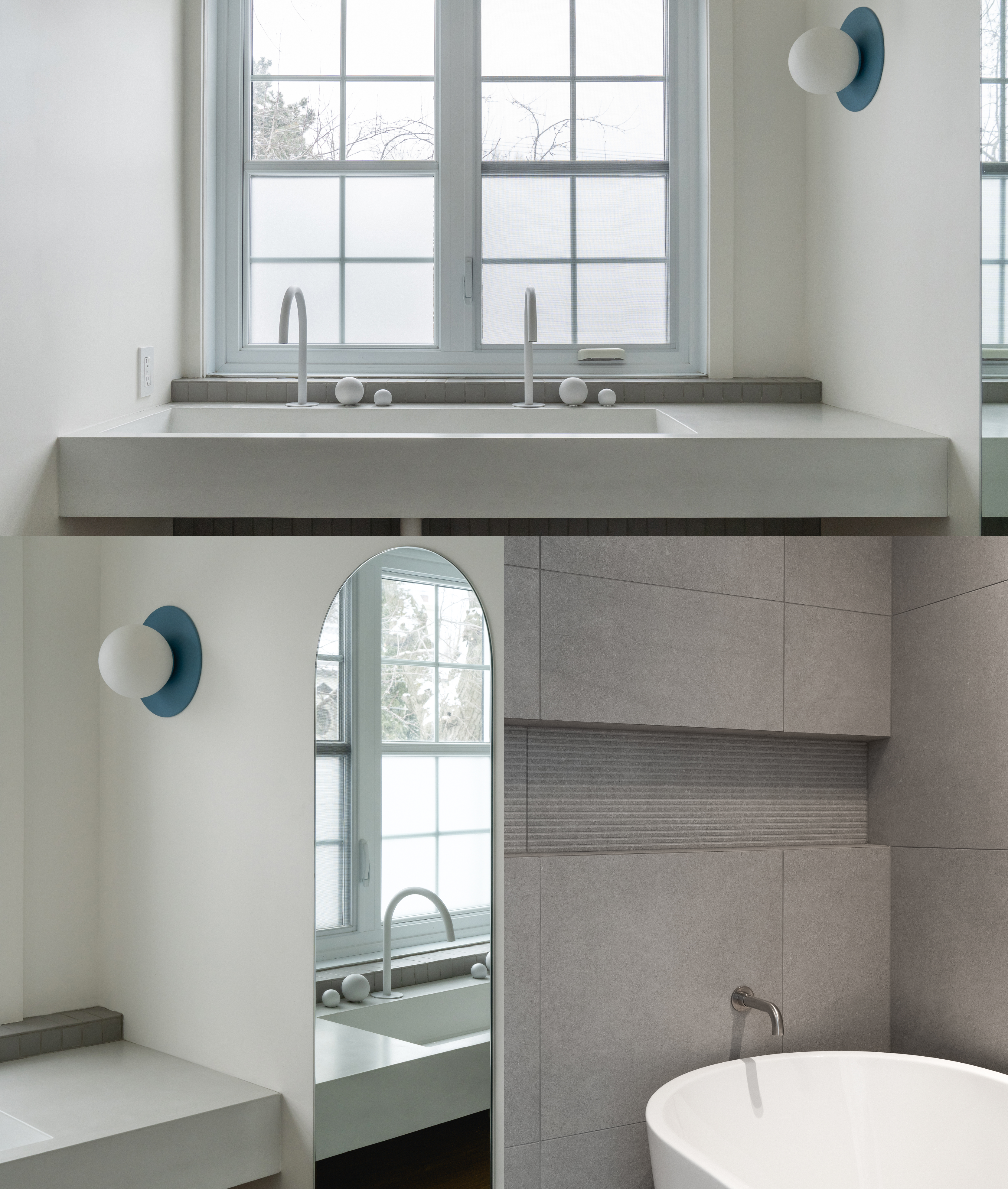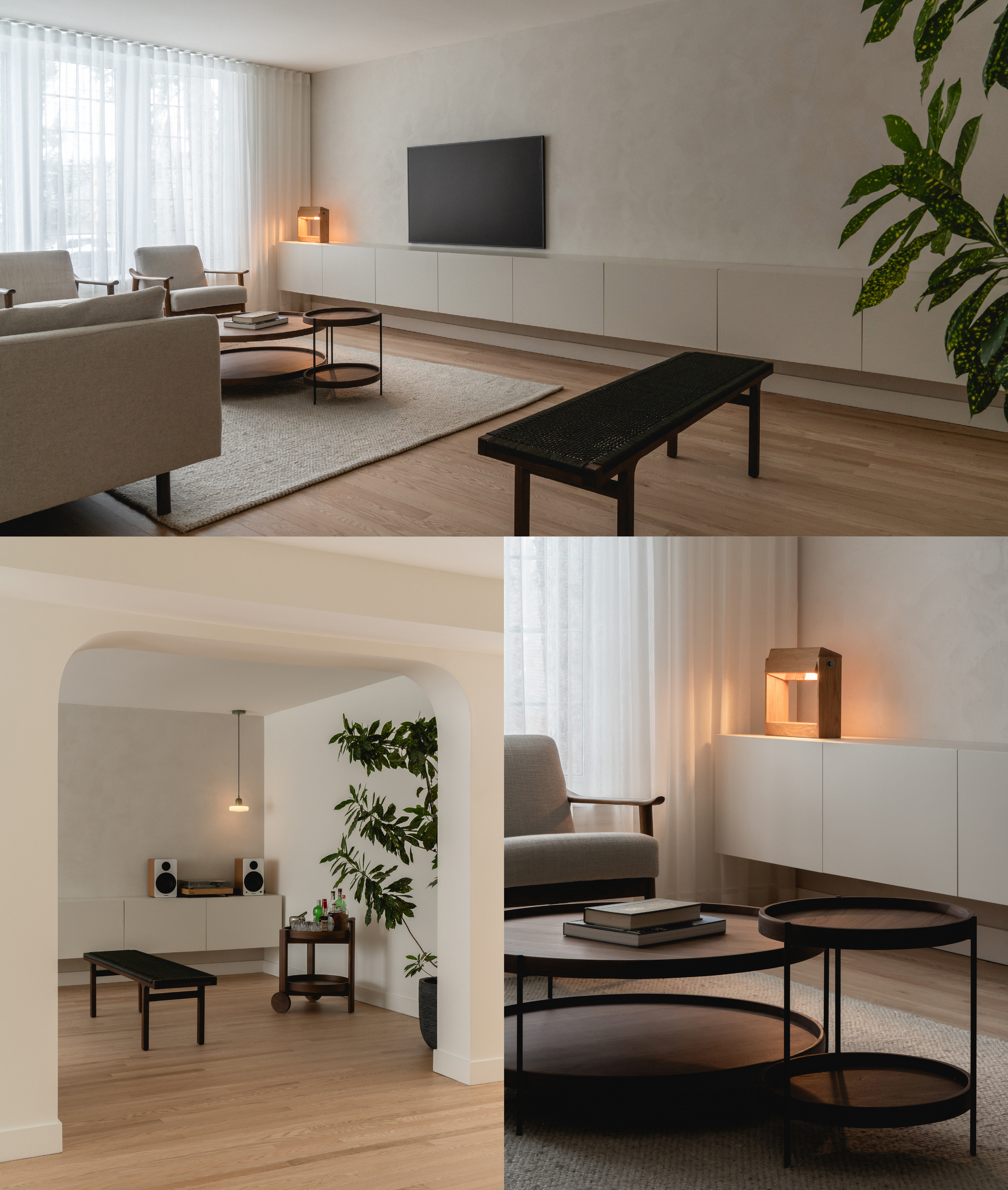 In response to a request from a young Montreal family, the Roslyn project involved redesigning their home to optimize the space around the fireplace, while connecting the living spaces and reorganizing the upstairs bedrooms. To achieve harmony and fluidity between the rooms, openings were created and enlarged, establishing a visual and physical link between the kitchen and dining room, and continuity between the living room and fireplace. Upstairs, the bedroom was designed as a master suite, with a study area, bathroom and walk-in closet behind the bed.