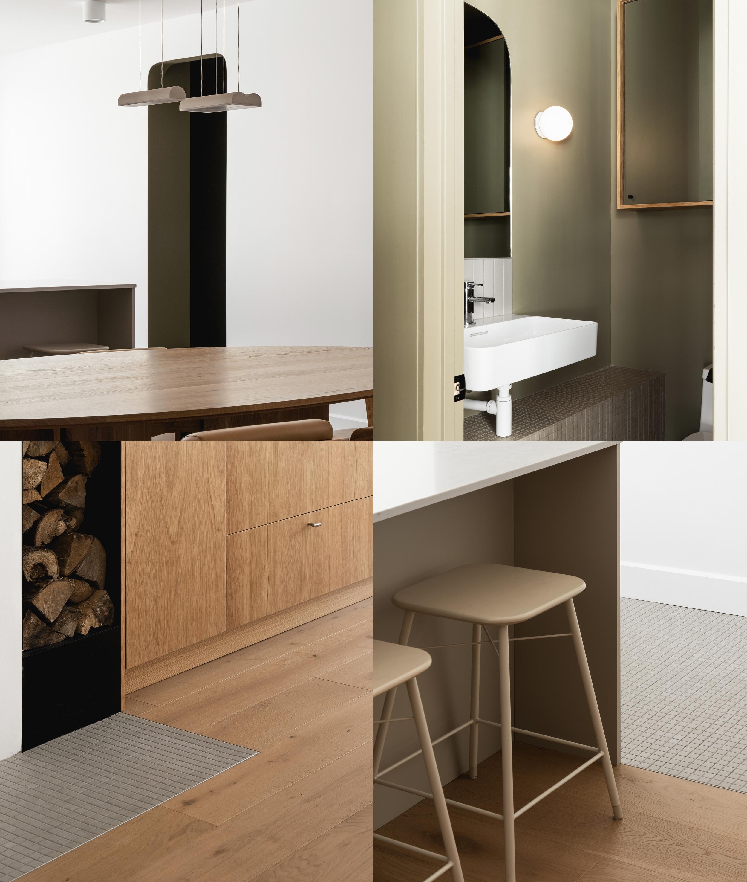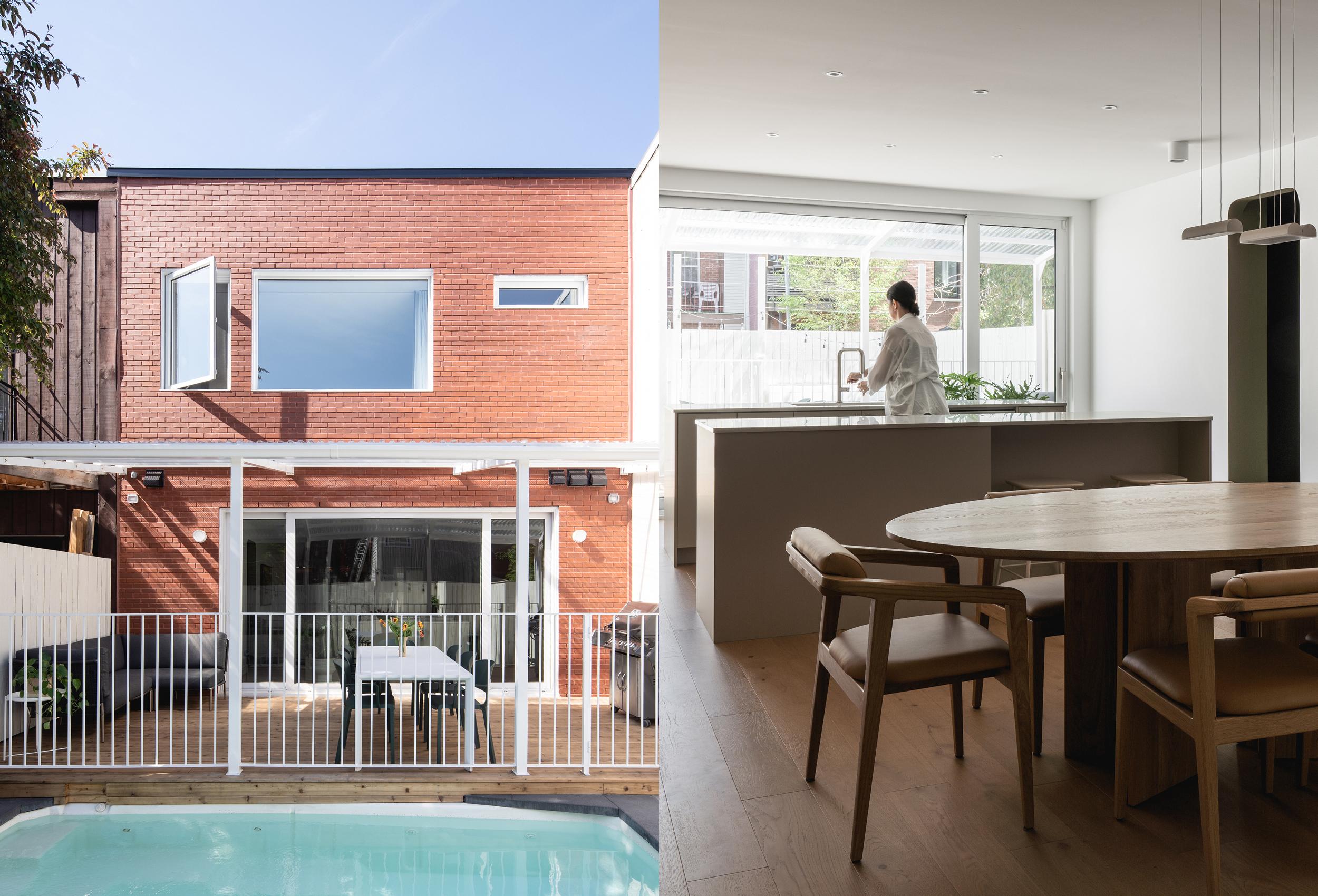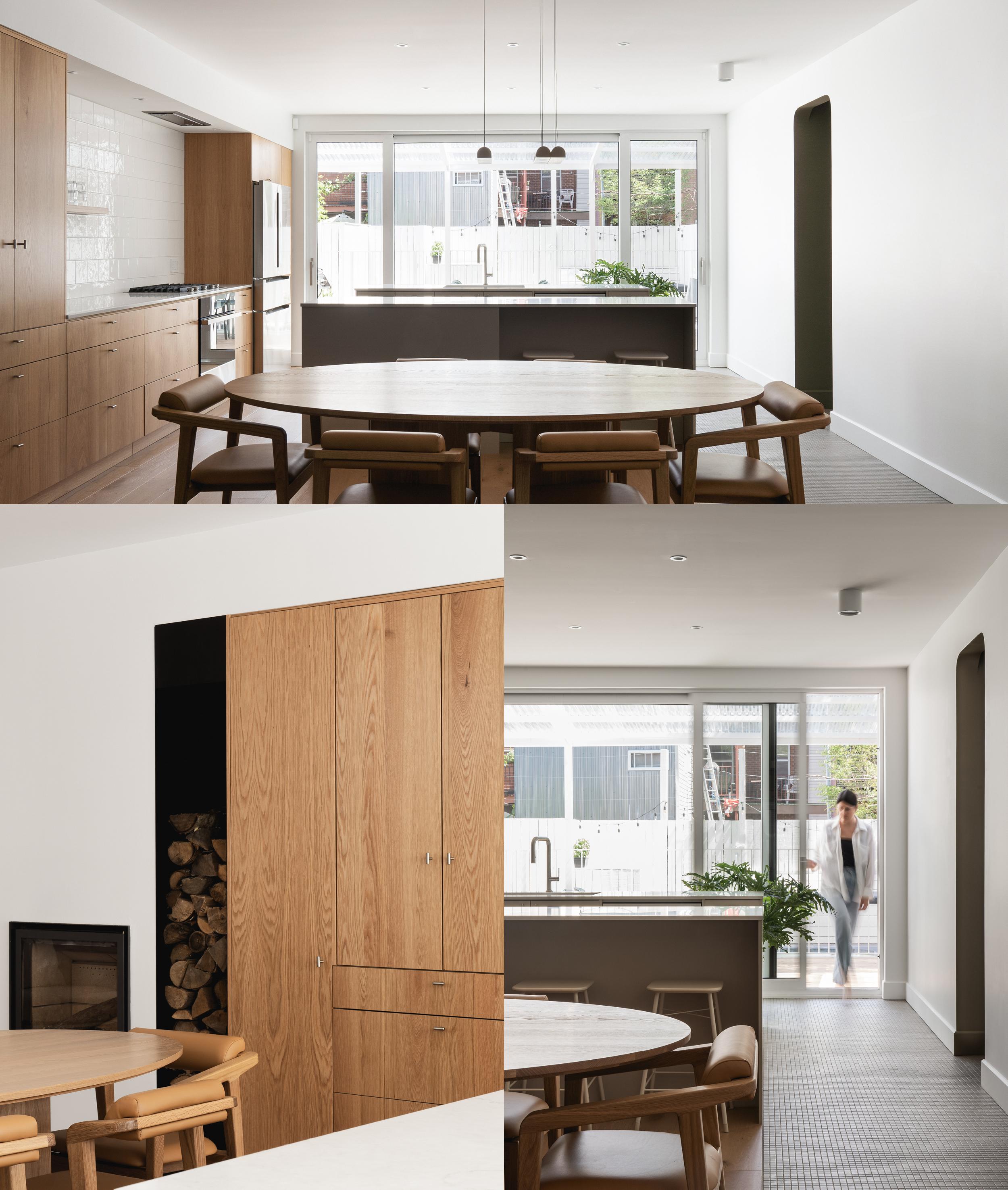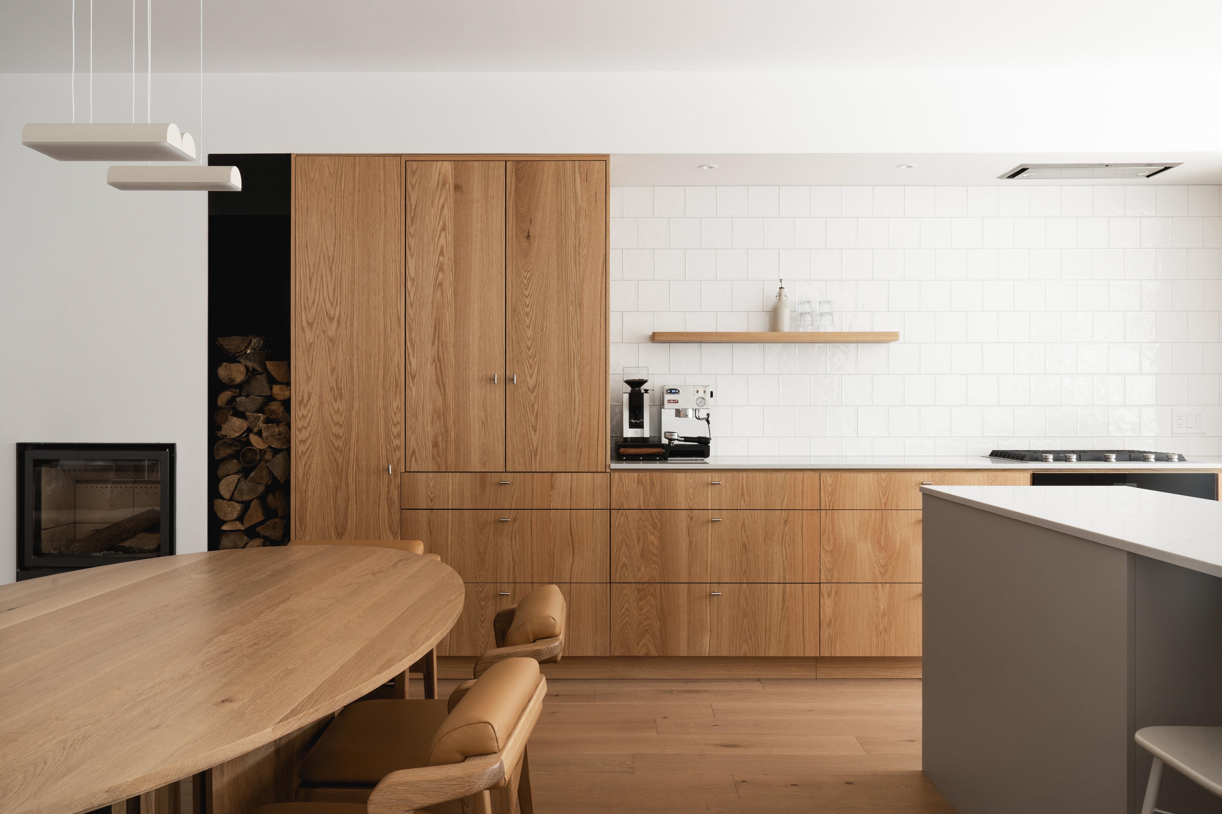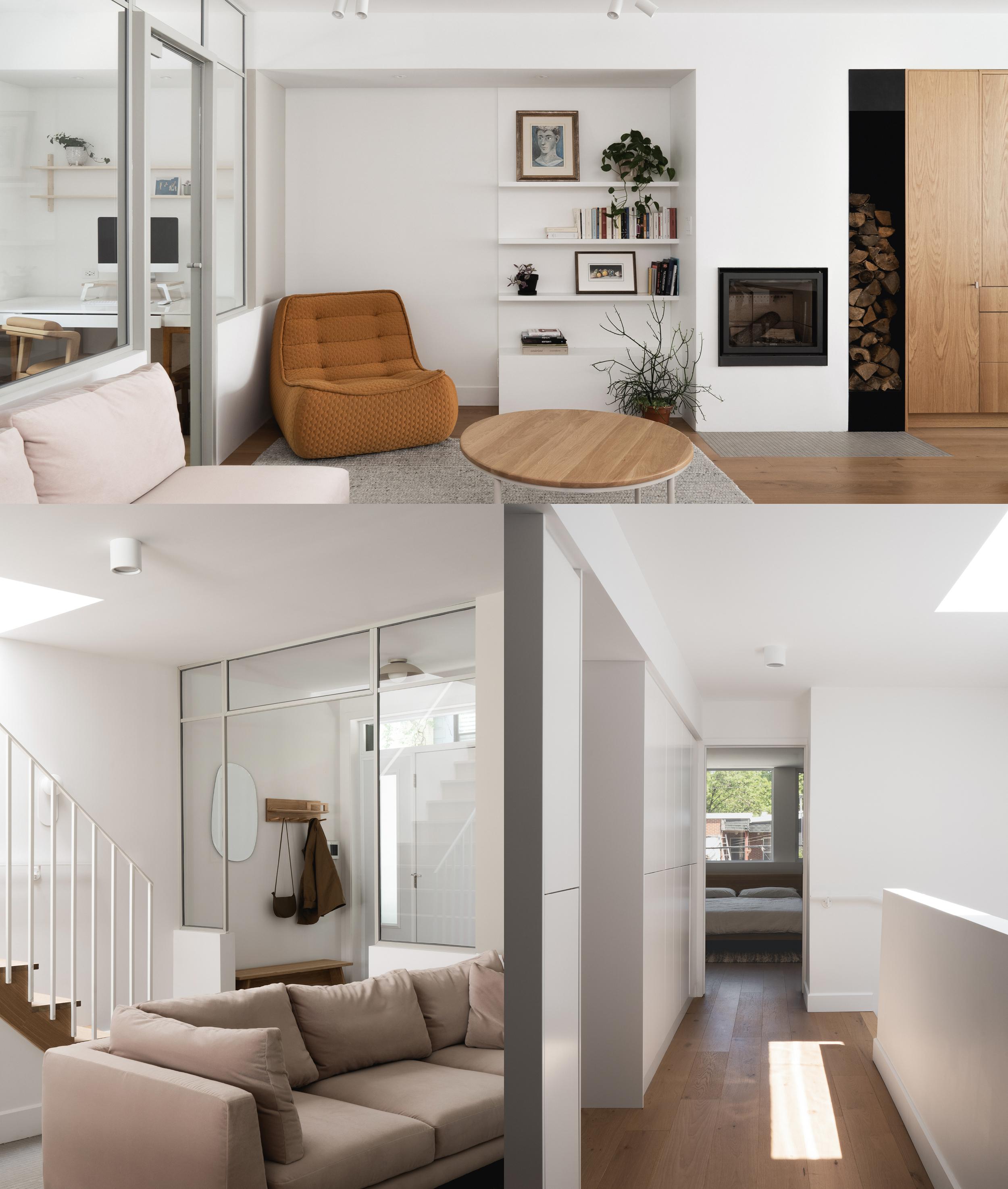 The house on Chabot had been lived in by the same family for several years. The challenge? To adapt it to their lifestyle, which had changed over time. To do this, we redesigned all the floors. On the first floor, we moved the kitchen closer to the outside. The windows are proportional to the islands, with a door on each side allowing access to the different outdoor areas. The kitchen, without being central, also links the rest of the first floor spaces. Its volume stretches and transforms from the dining room to the living room. Above the staircase, a new skylight brings natural light all the way down. Upstairs, space is maximized. The former large bathroom has been transformed into two bathrooms, one connecting to the master suite and the other to the upstairs landing.