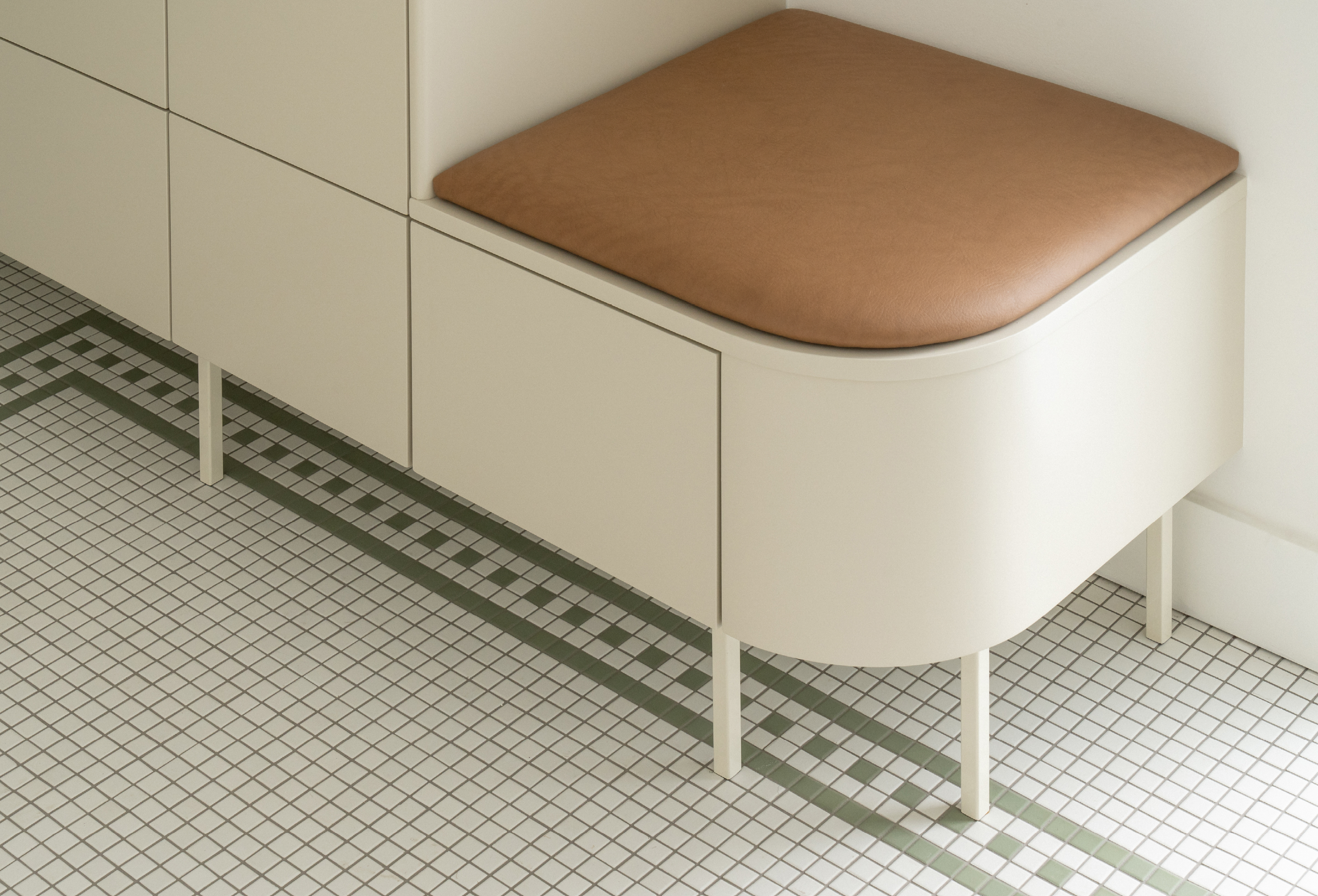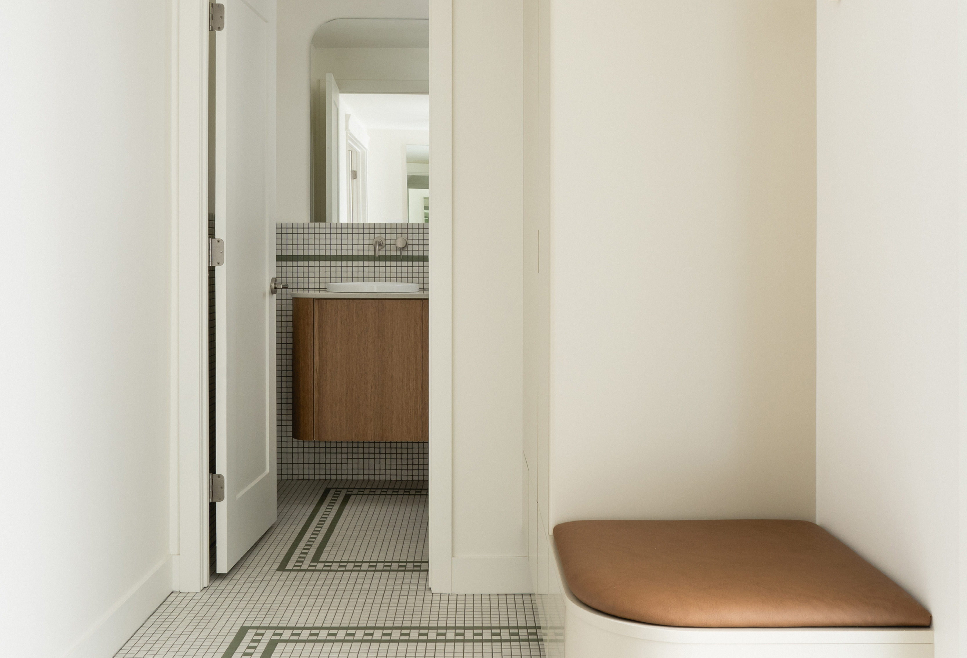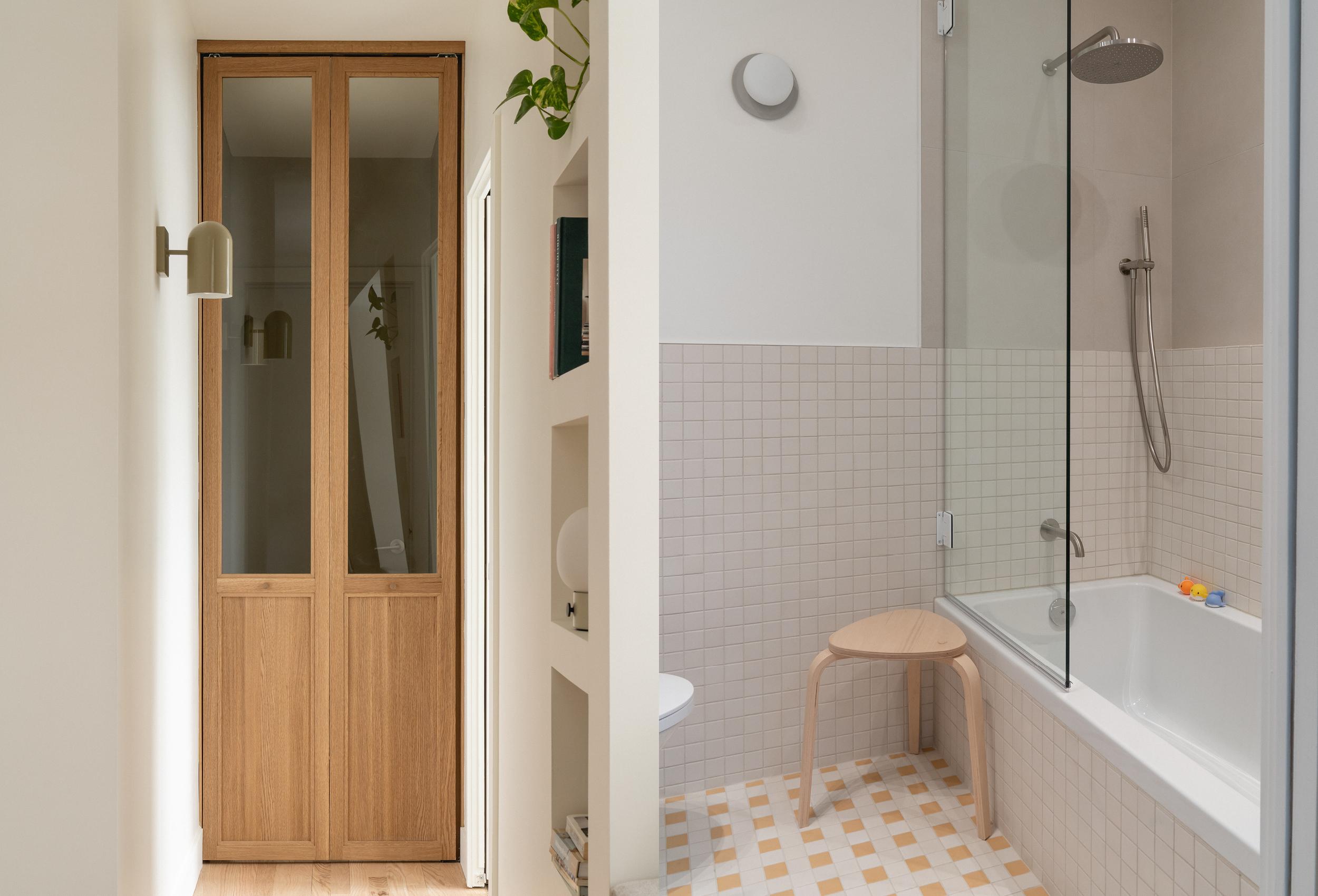 L'entrée et la salle d'eau ont été reliées afin de créer un espace fonctionnel pour toute la famille.